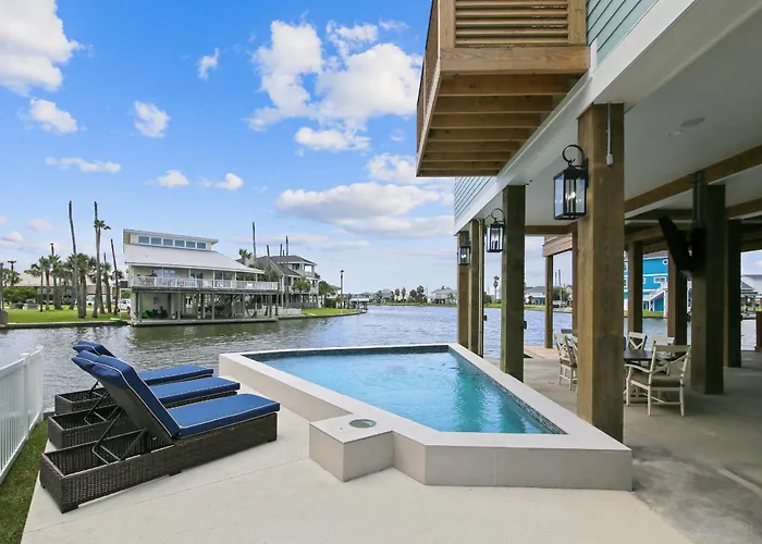A The Good Life Vila Galveston está localizada apenas 1.6 km da Jamaica Beach City Park e permite aos hóspedes desfrutar de canoagem, minigolfe e ciclismo. A pousada de Galveston beneficia de uma localização no distrito West End e dispõe de piscina privada para relaxar.